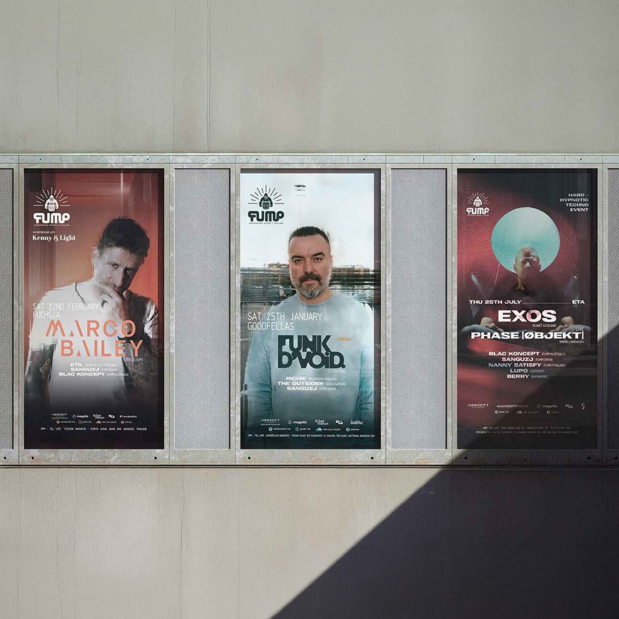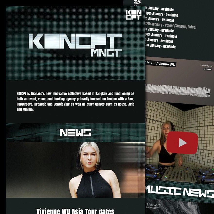 Brand identity design, website and marketing for electronic music event and music venue KONCPT based in Bangkok, Thailand. Focus was for a modern and modular style logo with bold lettering to allow for multiple variations of the presentation of the logo.