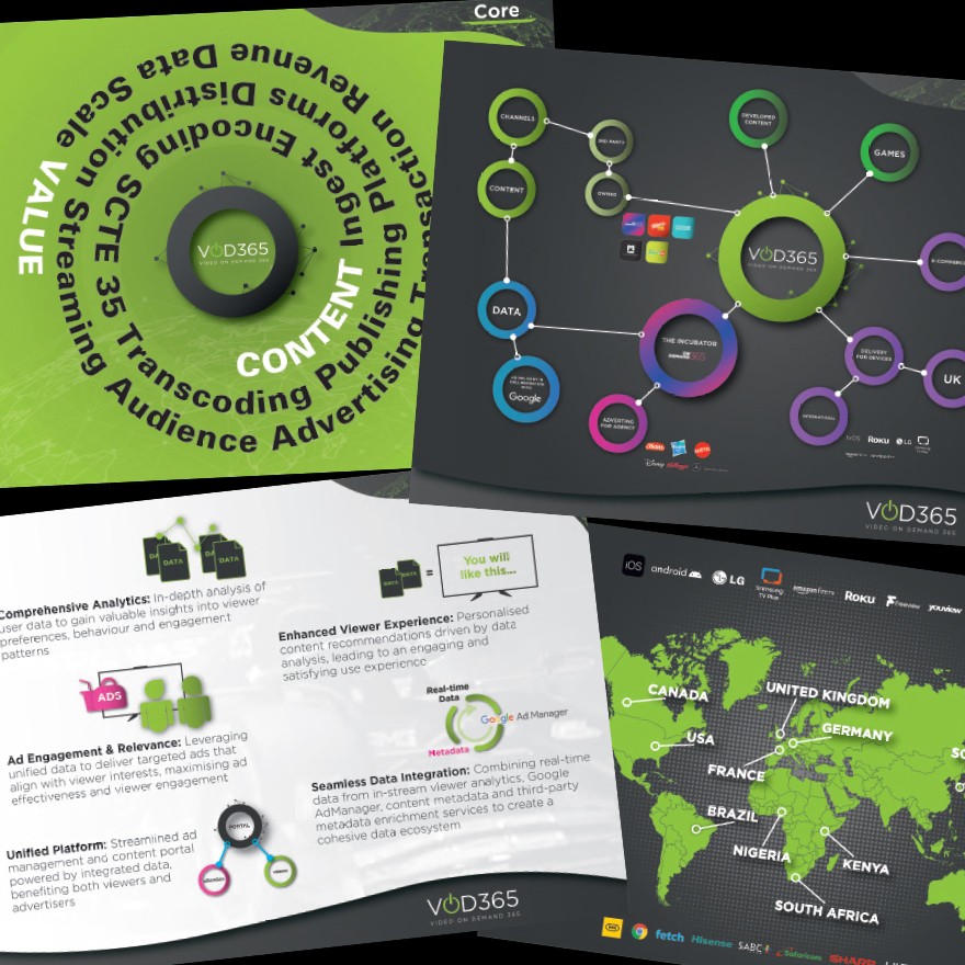Info graphics and brand marketing print publications for UK media entertainment platform and the various sub brands under their company that focus on children's content, music, sport and entertainment for global platforms such as ROKU, SamsungTV+, Amazon Fire Stick, Freeview, Netgem, Youview and MOVI Africa.