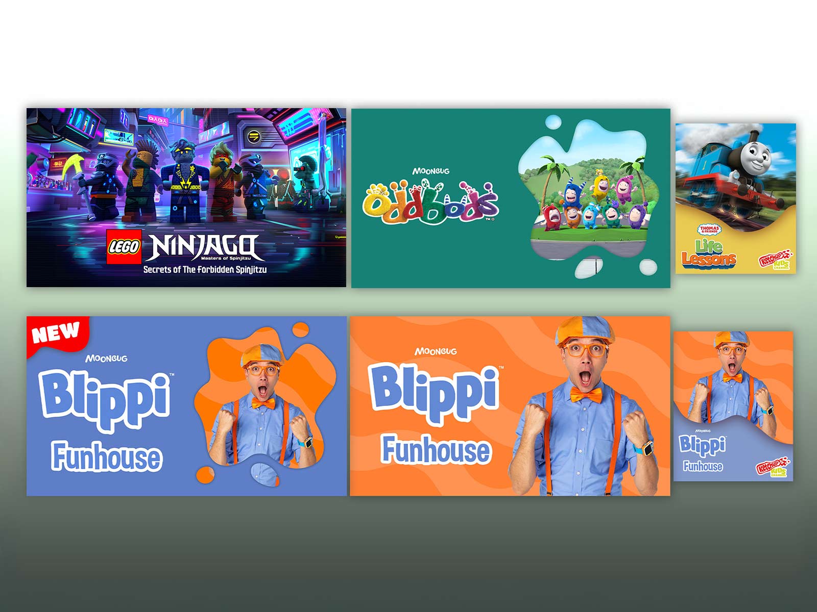 Info graphics and brand marketing print publications for UK media entertainment platform and the various sub brands under their company that focus on children's content, music, sport and entertainment for global platforms such as ROKU, SamsungTV+, Amazon Fire Stick, Freeview, Netgem, Youview and MOVI Africa.