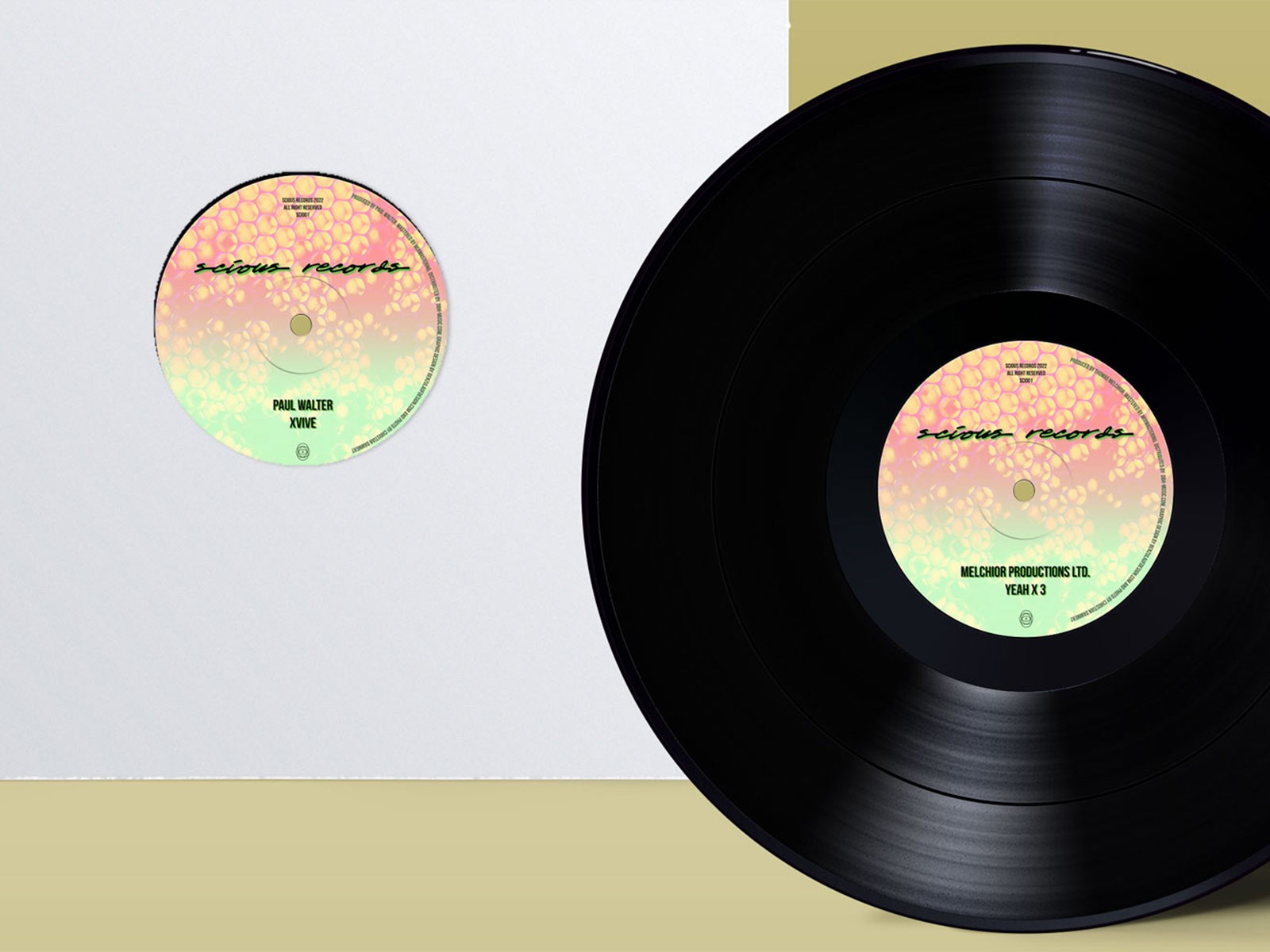 A selection of print designs for vinyl records for various international record labels. Print artwork designs ranging from double sided labels to full record covers.